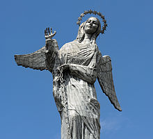 El Panecillo is a hill located in the middle west of the city at an altitude of about 3,016 metres (9,895 ft) above sea level. A monument to the Virgin Mary is located on top of El Panecillo and is visible from most of the city of Quito.