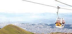 The Aerial tramway Station at Cruz Loma (part of the Pichincha mountain complex at about 4,000 metres (13,000 ft)). Since July 2005, Quito has had an aerial tramway, known as the "Telefériqo", from the city centre to the hill known as Cruz Loma on the east side of the Pichincha volcano.